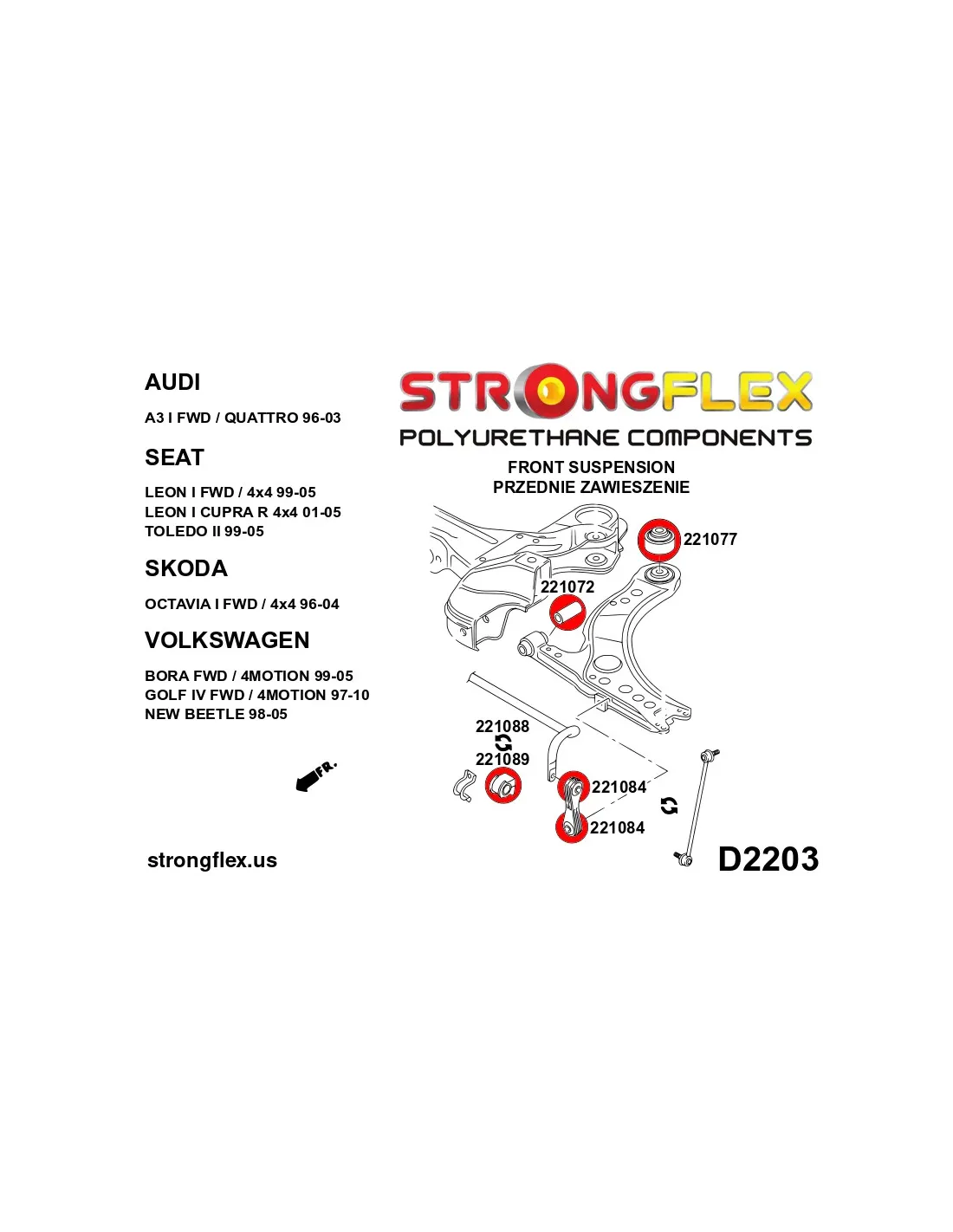 - 2x 221372B: Rear lower wishbone front mounting bush