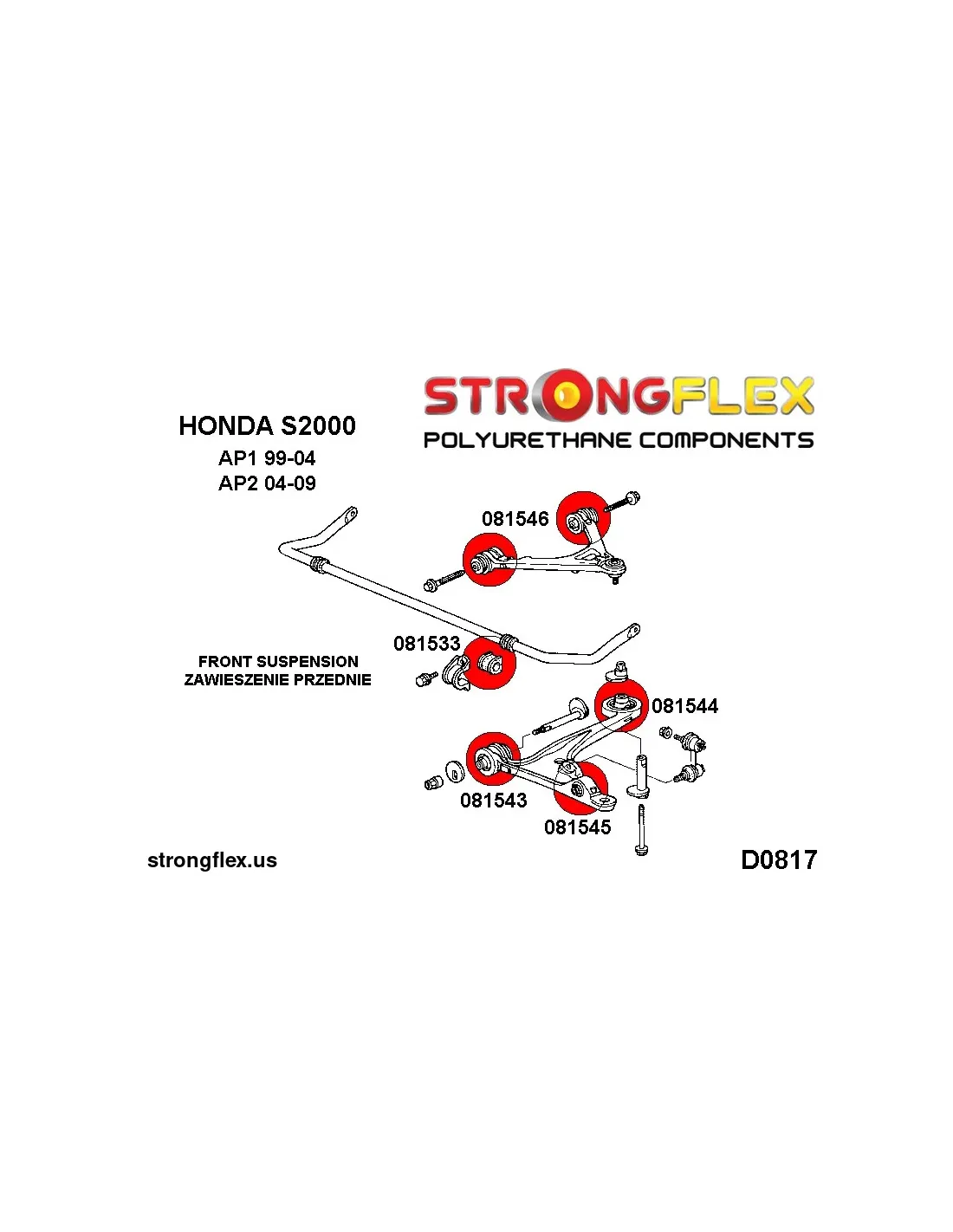 - 2x 081543A: Front lower wishbone front bush SPORT