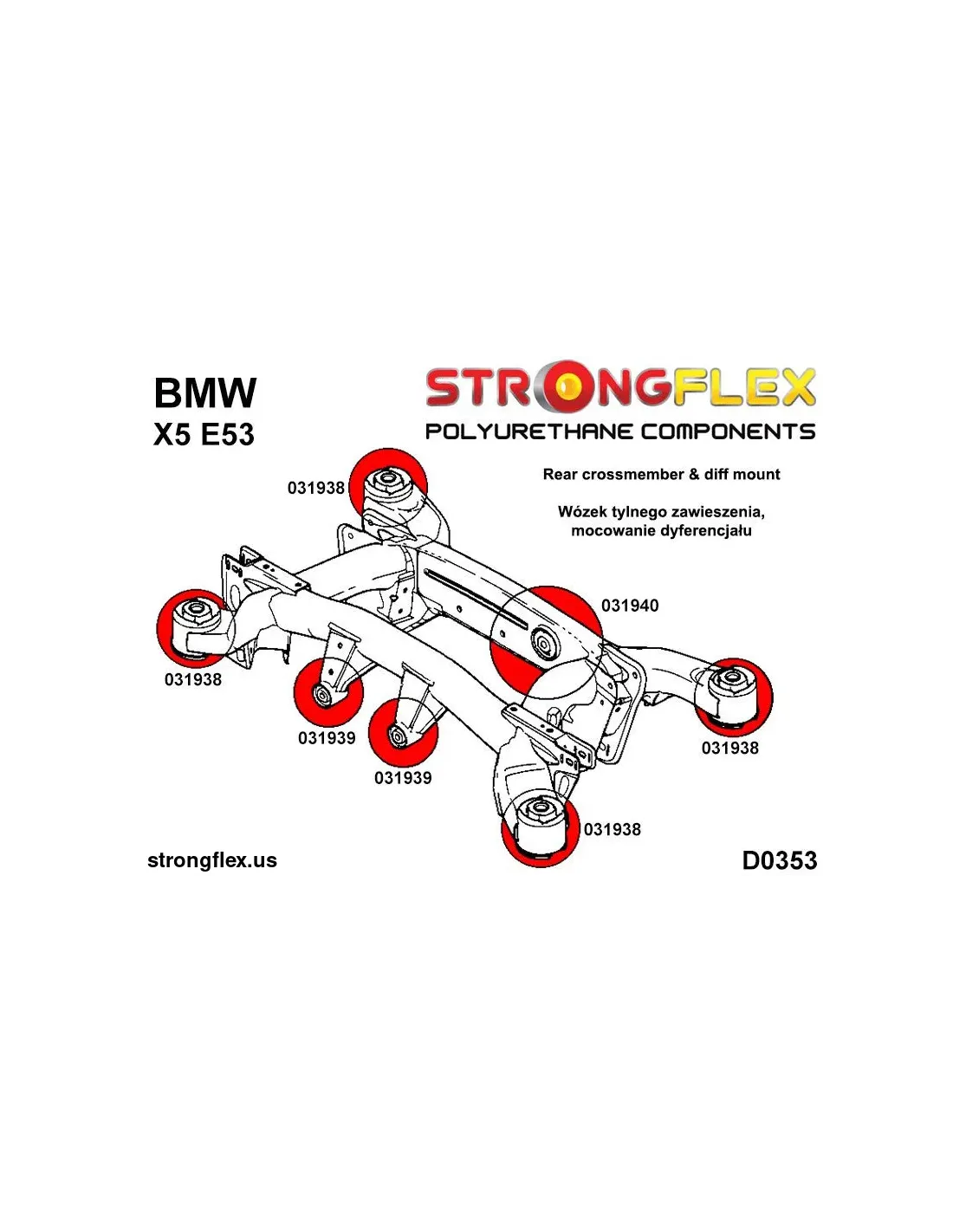 - This bush kit is only available in hardness 80ShA (red color), hardness 90ShA (yellow) is too hard for model X5 E53. 90ShA bush can transmit vibrations to the body.