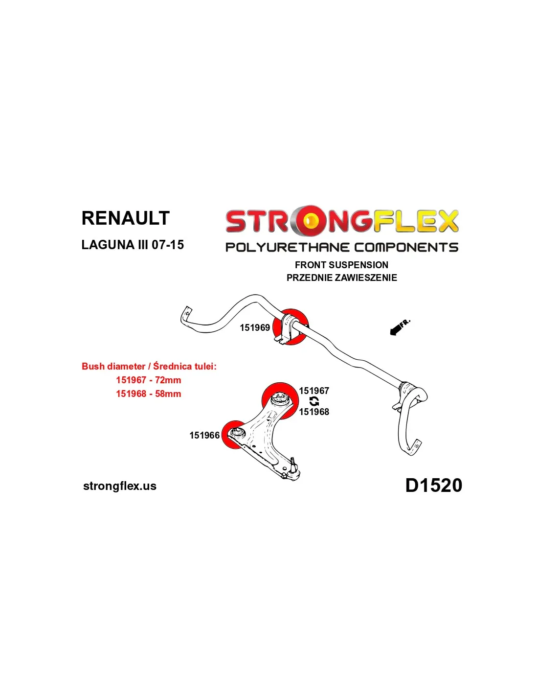- 2x 151967A: Front control arm – rear bush 72mm SPORT