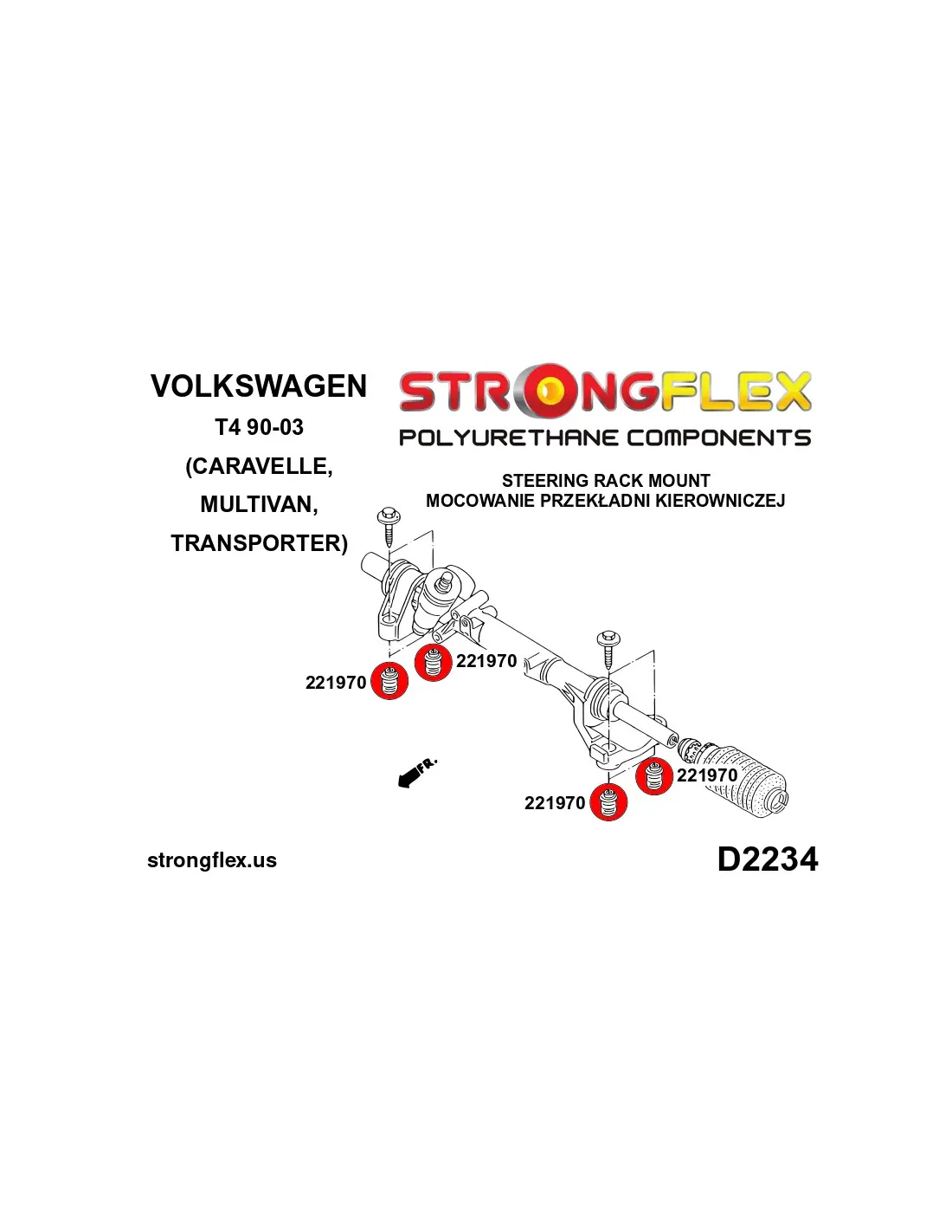 - The 221970 bush can be mounted with an M8 screw or an M10 screw. Before purchasing, check which screw you have in your car.